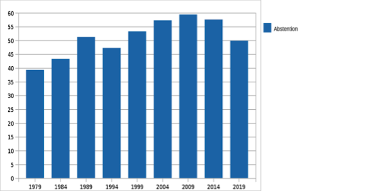 Les graphiques de l’abstention aux législatives et municipales permettent de repérer un même début de tendance à la hausse à la fin des années 1980, phénomène que l’on retrouve dans la plupart des pays européens, ce qui laisse déjà entrevoir que l’abstention a des causes qui dépassent les frontières nationales et tiennent à l’évolution des valeurs dans les démocraties européennes.
