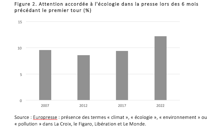 Cette hausse d’attention reste limitée (+3 points environ par rapport aux campagnes de 2007, 2012 et 2017) et le traitement médiatique de ces enjeux reste principalement marqué par une approche consensuelle et dépolitisée, comme l’avait montré Jean-Baptiste Comby en 2015. Par ailleurs, tout indique que les médias ne connectent pas forcément ces enjeux environnementaux à la campagne en train de se dérouler. Pour de nombreux citoyens soucieux de l’avenir de la planète (et de l’humanité), cela demeure insuffisant.